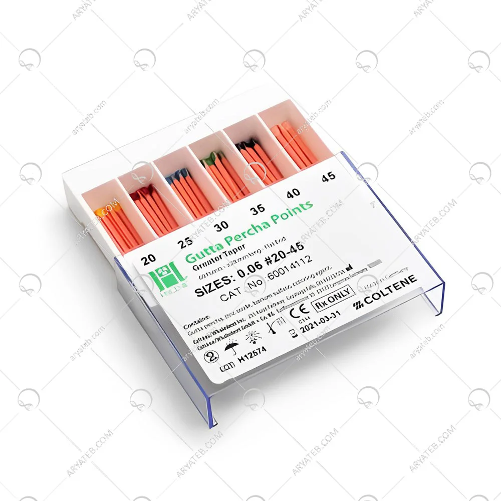 - کیفیت برجسته: گوتا پرکا کلتن Coltene از مواد با کیفیت بالا تولید شده است که به افزایش دوام و ثبات درمان کمک میکند و نیاز به درمانهای اضافی را کاهش میدهد.