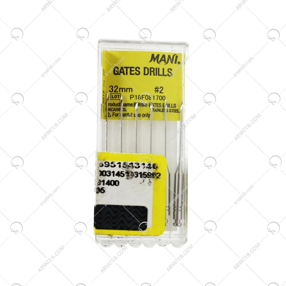 گیتس مانی ابزار مته دندانی هستند که برای تیز کردن دندان ها و باز کردن کانال های ریشه استفاده می شوند. این فرزها از فولاد ضد زنگ ساخته شده اند و در برابر شکستگی بسیار مقاوم می باشند.گیت های گلایدینگ دارای نوک بدون برش و سر بیضی شکل هستند و کانال دندان را به صورت قیفی باز می کنند. گیتس مانی دارای یک ساقه باریک و یک زائده برای اتصال به هندپیس هستند. از این کاترها برای باز کردن ورودی کانال استفاده می شود. علاوه بر این، با از بین بردن برجستگی عاج، امکان دسترسی در امتداد یک خط مستقیم را فراهم می کنند و به سرعت کانال تاجی و میانی را گشاد و مخروطی می کنند. نقطه ضعف مستعد شکست در بالای گردن این گیتس ها طراحی شده است. این طرح خروج دستگاه برش را از داخل کانال تسهیل می کند.شکستگی سر برش کانال را مسدود می کند. نکته قابل ذکر این است که این دریل ها باید به طور مداوم بچرخند و در صورت توقف چرخش، سر دستگاه در داخل کانال گیر کرده و در اثر خمیدگی زیاد باعث شکستگی آن می شود.