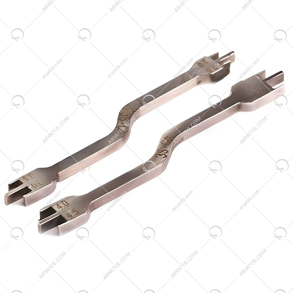 - گیج ارتودنسی جهت تنظیم فرآیند دقیق نصب براکت روی دندان کاربرد دارد.دو شاخه ای و از جنس استیل میباشد.بصورت دو شاخه ای به فروش می رسد.