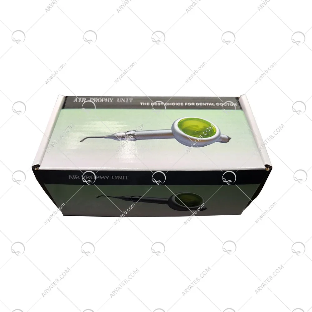 Air Prophy unit ایرفلو از ترکیبی از هوا، آب و پودرهای فرموله شده مخصوص برای حذف پلاک، لکه ها و بیوفیلم از سطوح دندان استفاده می کند. این شامل یک دستگاه دستی متصل به منبع هوا و آب، همراه با یک محفظه پودر حاوی پودر تمیز کننده است. هنگامی که این دستگاه فعال می شود، جریان کنترل شده ای از هوا، آب و پودر را روی دندان ها هدایت می کند و به طور موثر و کارآمدی سطوح را تمیز و جلا می دهد.